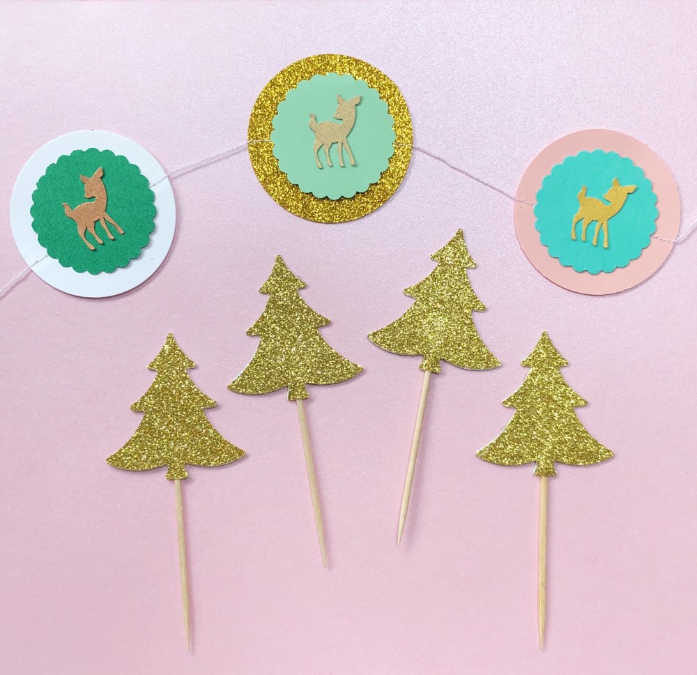 Cupcake Toppers Glitter Sparkle Χρυσά Έλατα-Hand Made By Ministry Of Art 6pcs