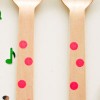 Γεμίστε χρώμα και στυλ το γιορτινό σας τραπέζι! Σε κάθε περίσταση που χρειάζεται μια πινελιά διασκέδασης και χάρης, αφήστε τους ξύλινους, πολύχρωμους σύμμαχούς σας να κλέψουν τη παράσταση! Γνωρίστε ολόκληρη τη σειρά απο βιοδιασπώμενα κουτάλια, πηρούνια και μαχαίρια απολύτως ασφαλή για τους μικρούς μας φίλους και πανέτοιμα να δώσουν έξτρα λάμψη σε κάθε είδους πάρτυ! Τολμήστε mix and match σε 10 υπέροχα χρώματα και 3 δημοφιλή σχέδια! Ταιριάζουν καταπληκτικά με όλα τα tablewares του partyshop!
