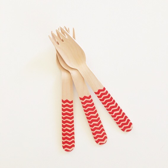 abcJoy κόκκινα chevron ξύλινα πιρουνάκια (12-pack)