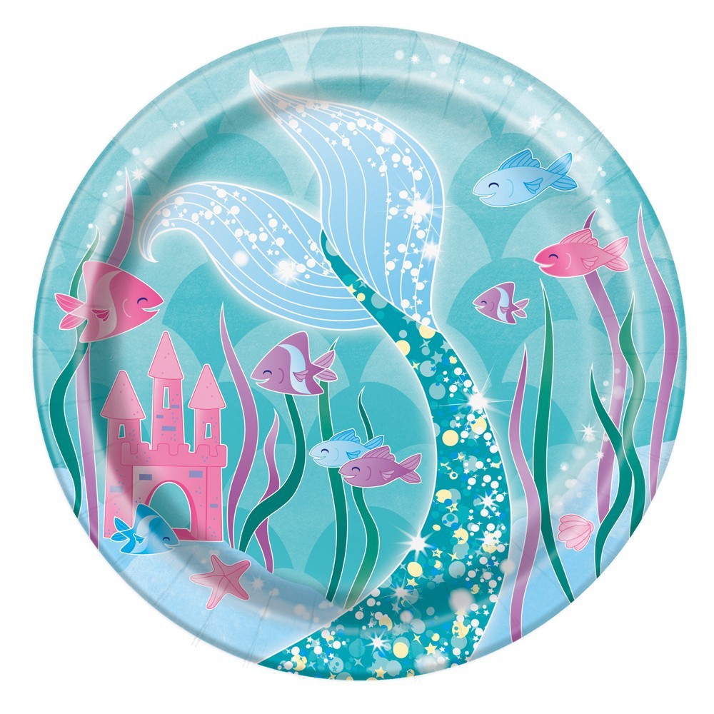 Κάθε πακέτο περιλαμβάνει 8 χάρτινα πιάτα γλυκού με τον βυθό και την ουρά της γοργόνας.