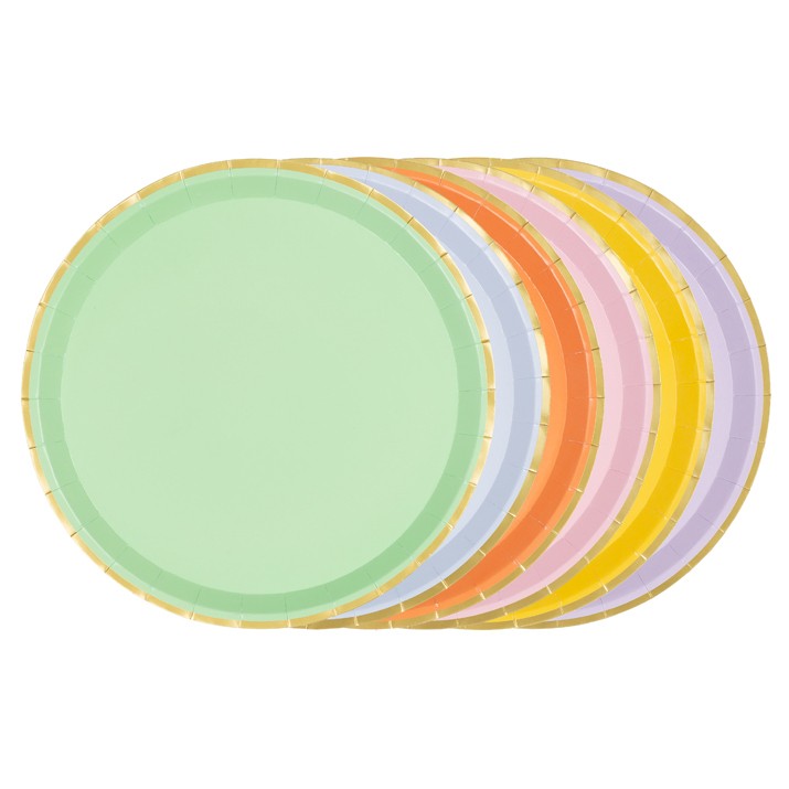 Χάρτινα πιάτα σε 6 διαφορετικά χρώματα με χρυσό φινίρισμα.