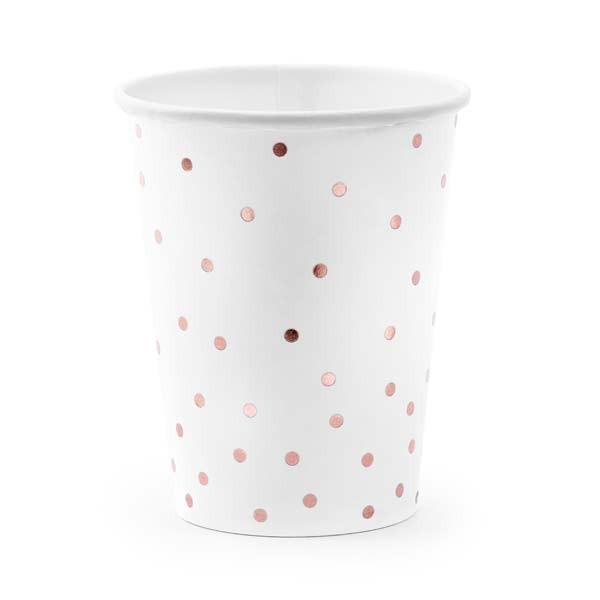 Χάρτινα Ποτήρια Λευκά Με Ροζ-Χρυσό Πουά PartyDeco