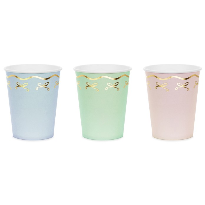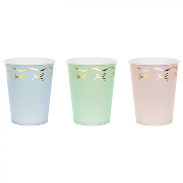Χάρτινα Ποτήρια Παστέλ Με Χρυσό Φιόγκο