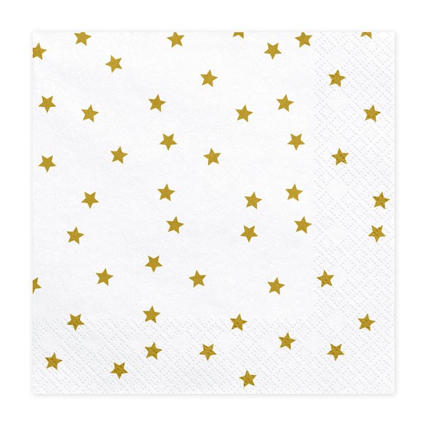 Χαρτοπετσέτες Λευκές Με Χρυσά Αστέρια PartyDeco