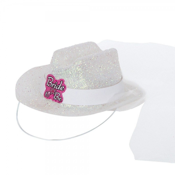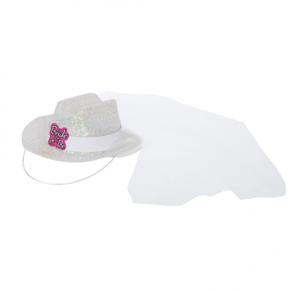 Το πακέτο περιέχει ένα mini cowboy λευκό καπελάκι με τούλι.