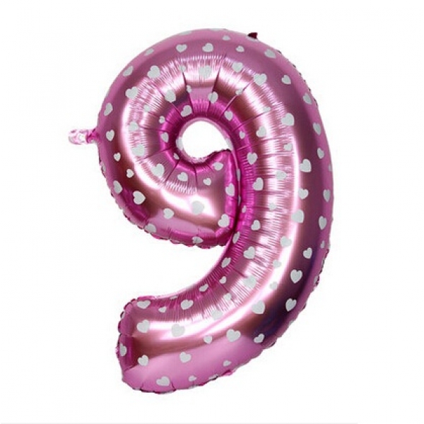 Μπαλόνια Foil 16'' Ροζ με Λευκές Καρδιές-Επιλέξτε Αριθμό