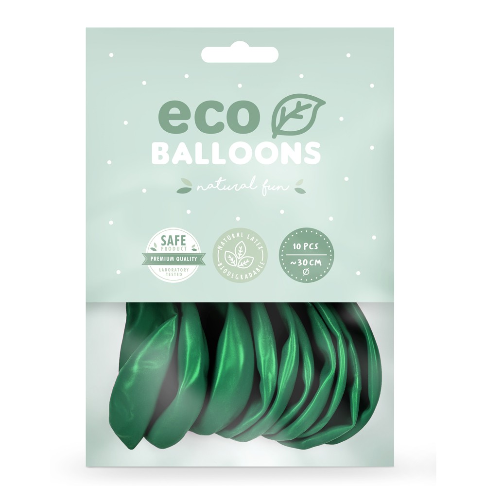 Κάθε συσκευασία περιλαμβάνει 10 μπαλόνια eco σε χρώμα πράσινο μεταλλικό, υπέροχα για πολλά θεματικά πάρτυ!