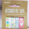 Κάθε πακέτο περιλαμβάνει 4 αυτοκόλλητες ταινίες σε χρώμα ροζ, κίτρινο, βεραμάν με μοτίβα και ασημί γκλίτερ.