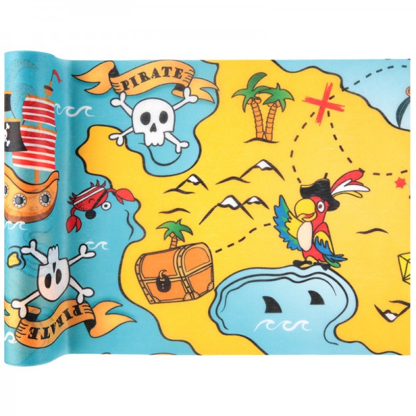 Ένα υπέροχο runner με πειρατές, μυστικούς χάρτες, νεκροκεφαλές και χταπόδια, θα γίνει έξτρα στολίδι στη διακόσμηση του πάρτυ και του θεματικού candy bar.